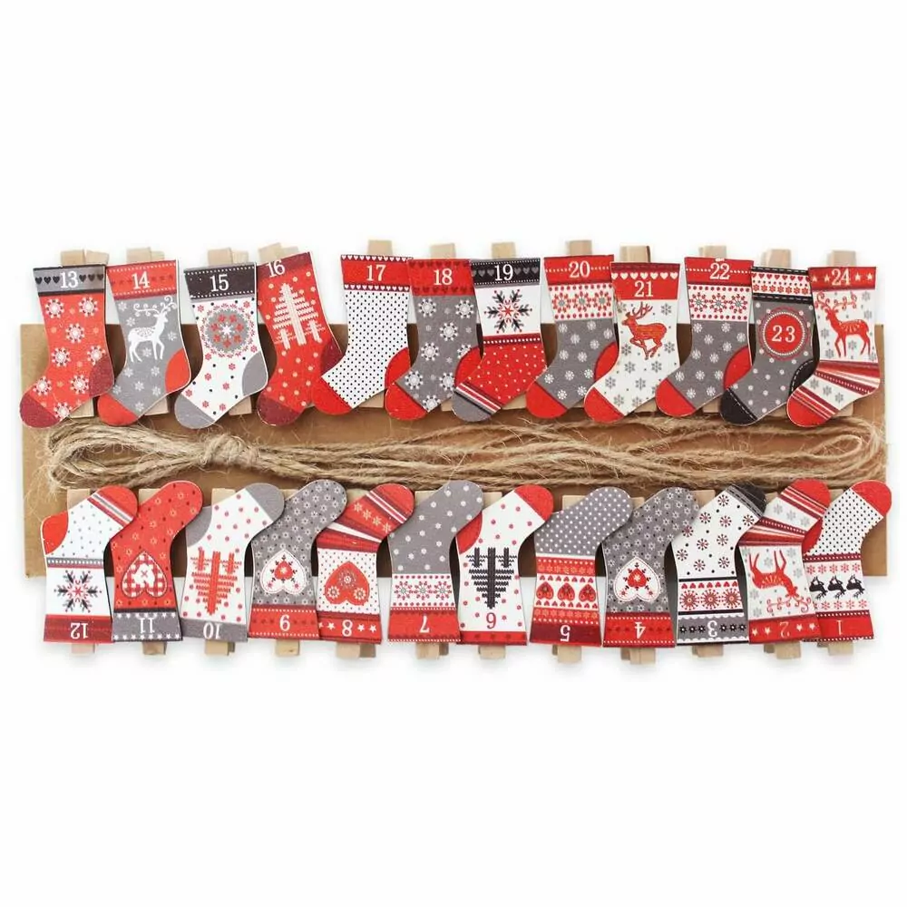 Adventní kolíčky dřevo 24ks/2cm červená