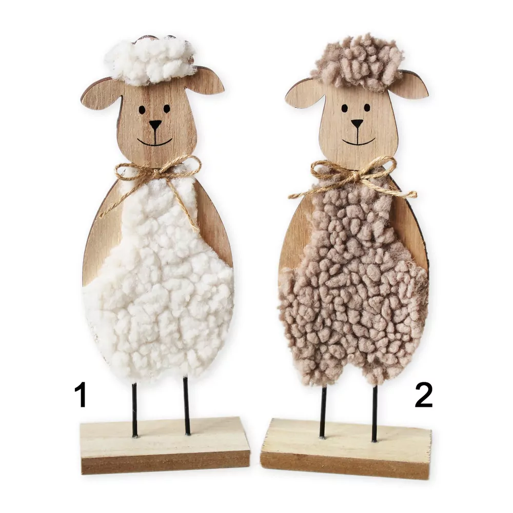 - Beránek dřevo/textil 22cm mix hnědá/bílá