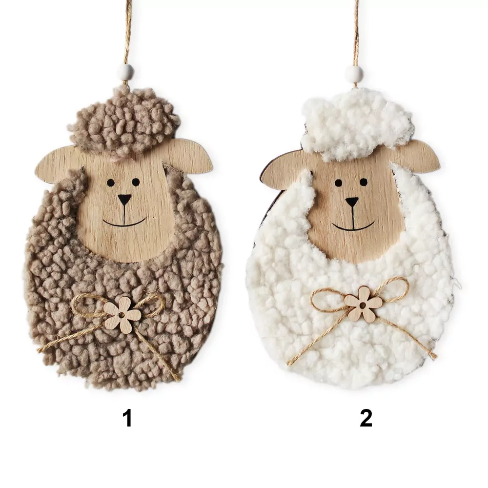 - Beránek závěs dřevo/textil 15,5 cm mix hnědá/bílá