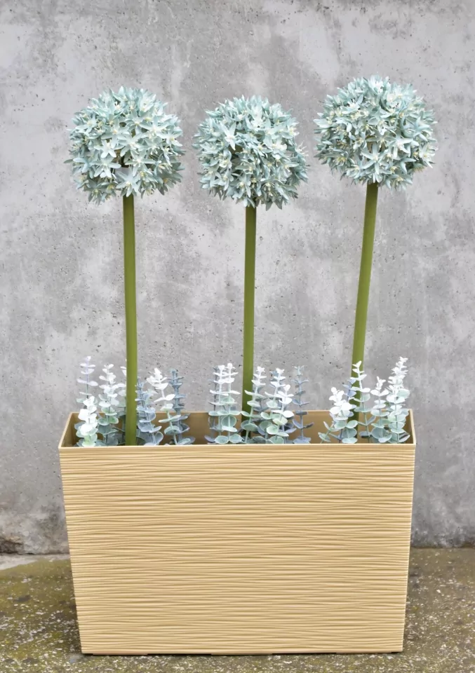 Umělý okrasný česnek s opravdu velkým květenstvím. Stonek je ohýbatelný a tvarovatelný pomocí drátu, který je uvnitř stonku.