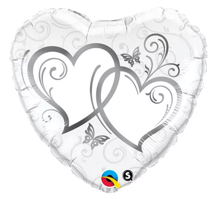 - Fóliový balónek 18 palcový QL, Entwined Hearts (stříbrný)
