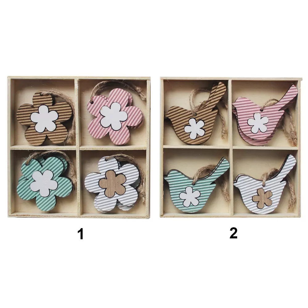 - Květinka/ptáček závěs dřevo 8ks/5cm mix