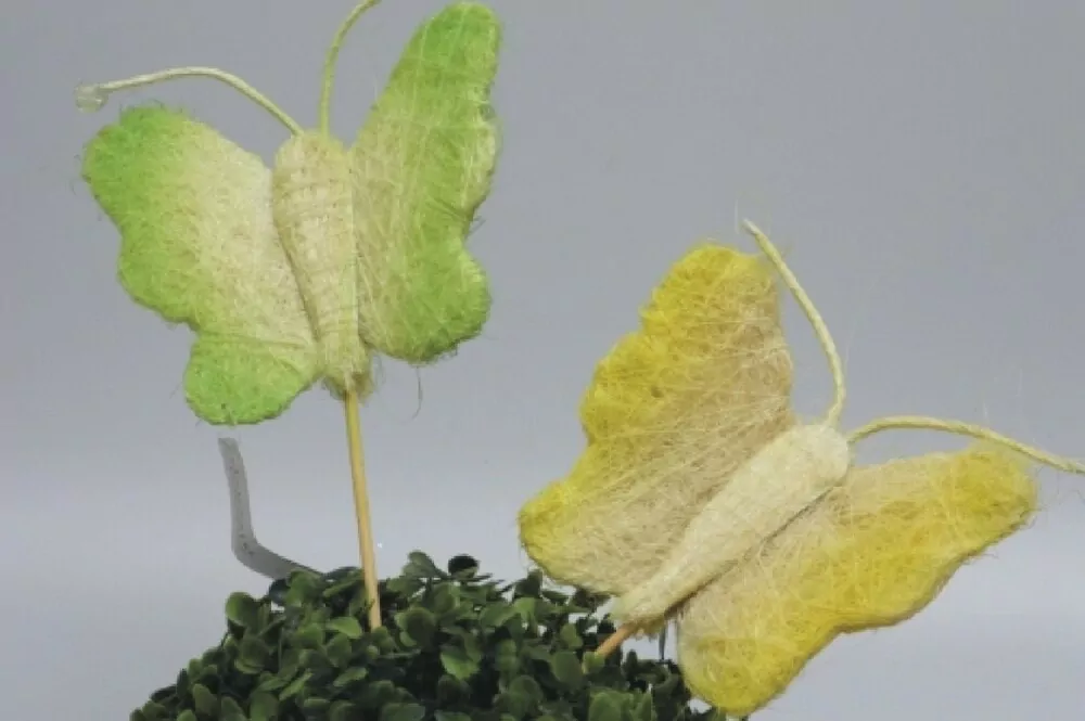 Motýl ze sisalu vhodný jako zápich do květináčů. Barva zelená nebo žlutá.