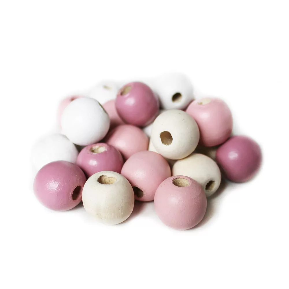 - Perličky dřevo 24ks/1.8cm růžová mix