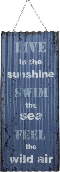 Nástěnná vlnitá plechová cedule poslouží jako dekorace. Cedule je opatřená řetízkem na zavěšení.