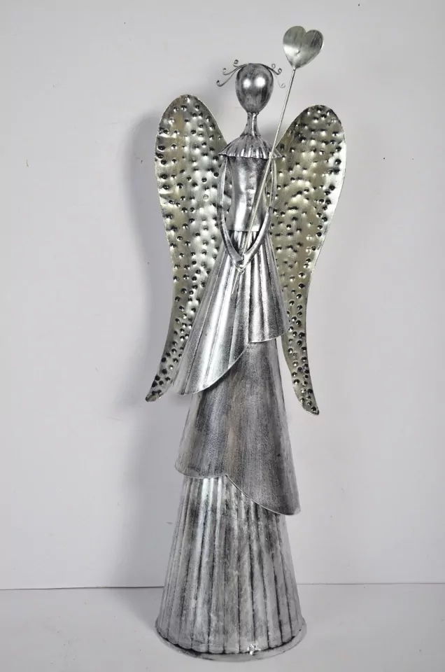 - Plechový anděl Wave stříbrný-champagne se srdíčkem, 65,5 cm