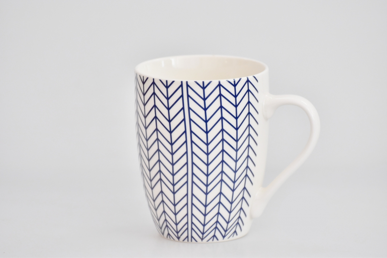 Klasický porcelánový hrnek s dekorem v modré barvě. Hrnek je vhodný na použití do mikrovlné trouby a je možné ho mýt v myčce nádobí.
