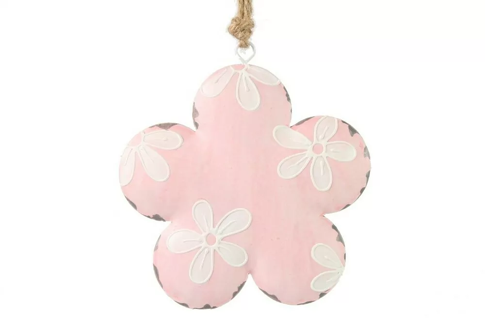 Dekorativní kovová květina na zavěšení s malými bílými květinkami.