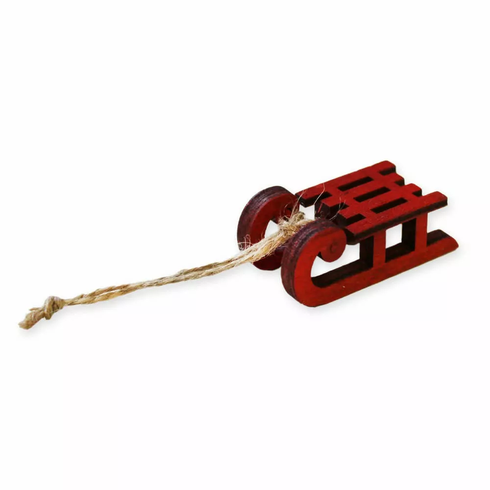 Sáňky závěs dřevo 4ks/5cm červená