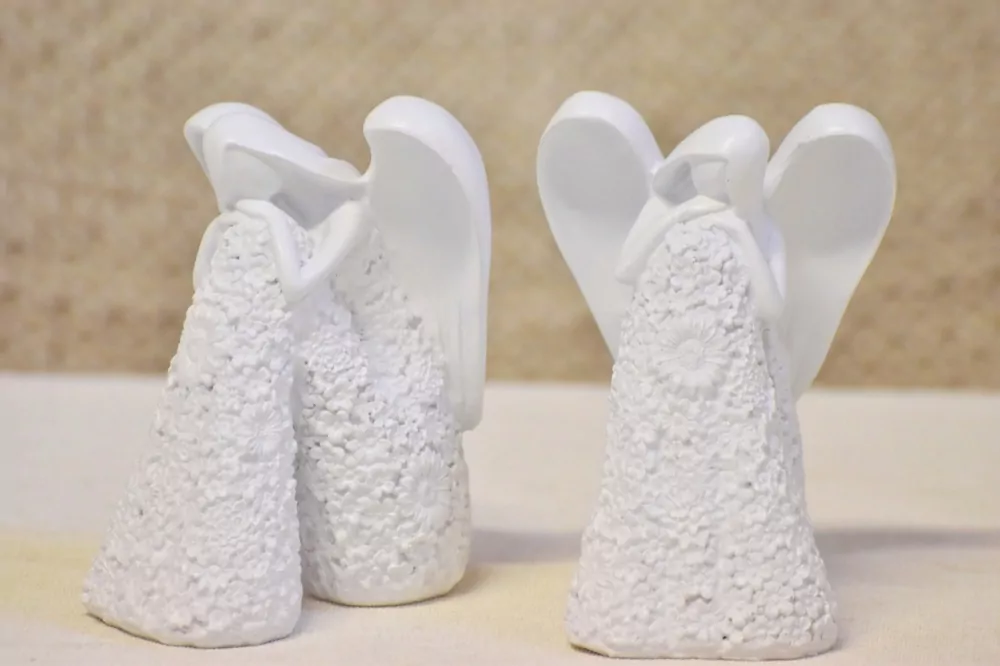 Soška anděla v šatech z drobných bílých kvítků . Andílek může být pěkným dárkem i milou pozorností pro vaše přátelé.