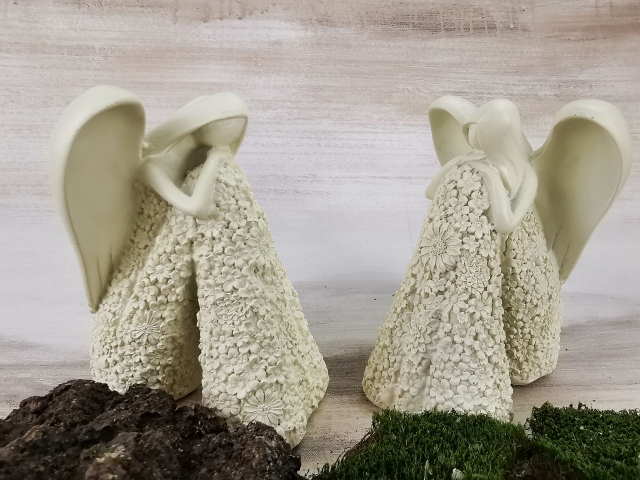 Soška anděla v šatech z drobných kvítků . Andílek může být pěkným dárkem i milou pozorností pro vaše přátelé.