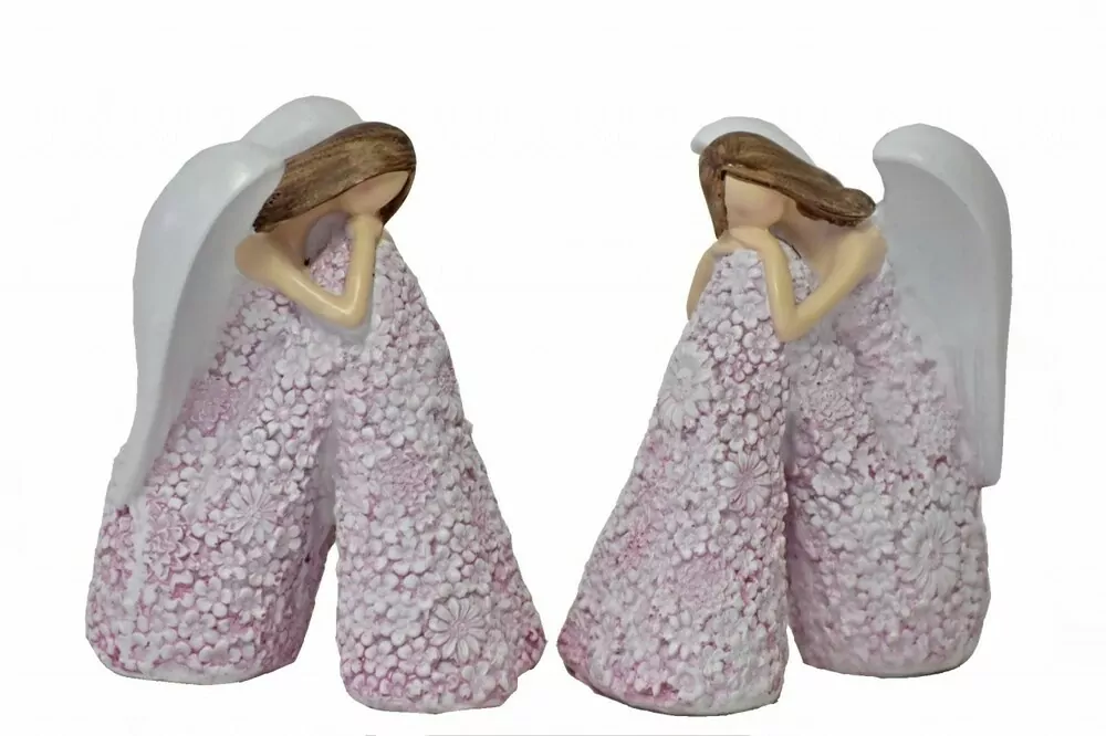 Sedící anděl Flo starorůžový 12,5 cm, mix druhů