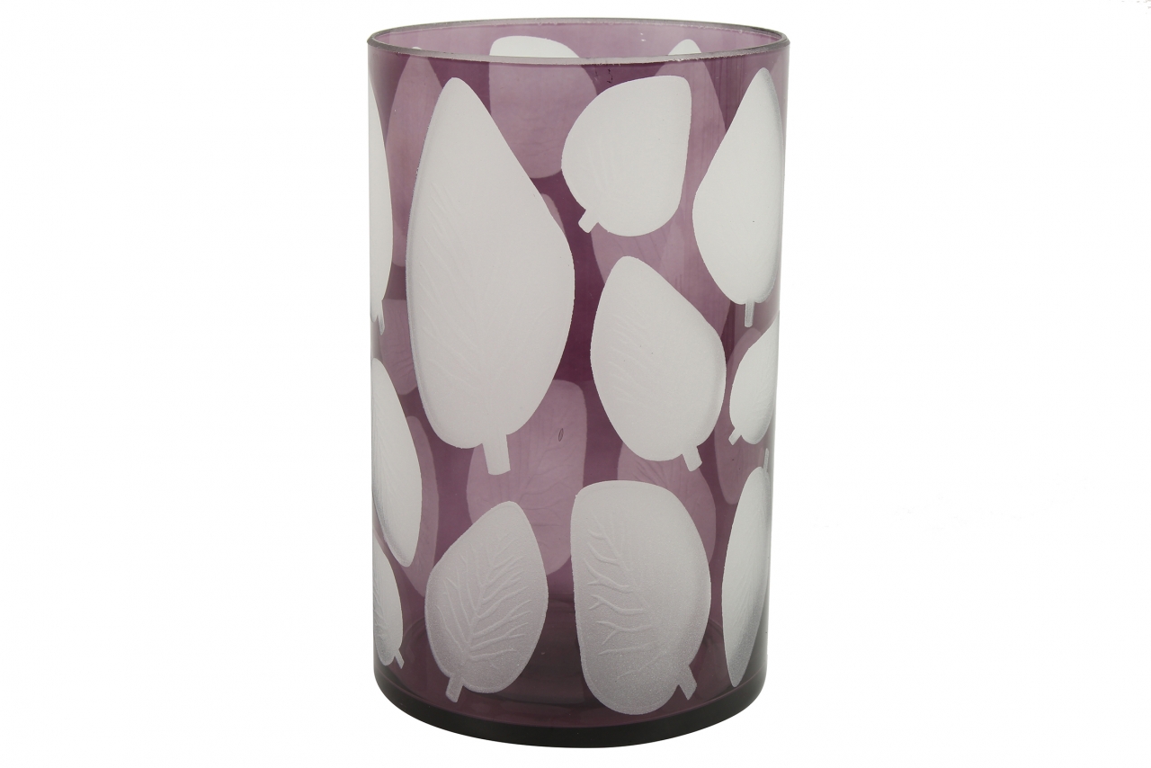 Skleněný svícen Zora, lila s listem 25x15 cm