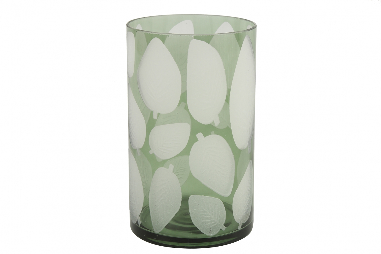 Skleněný svícen Zora, zelený s listem 20x12 cm