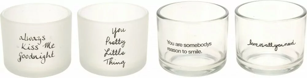 1 balení obsahuje 4 ks (2x matné, 2x čiré sklo) mix nápisů.