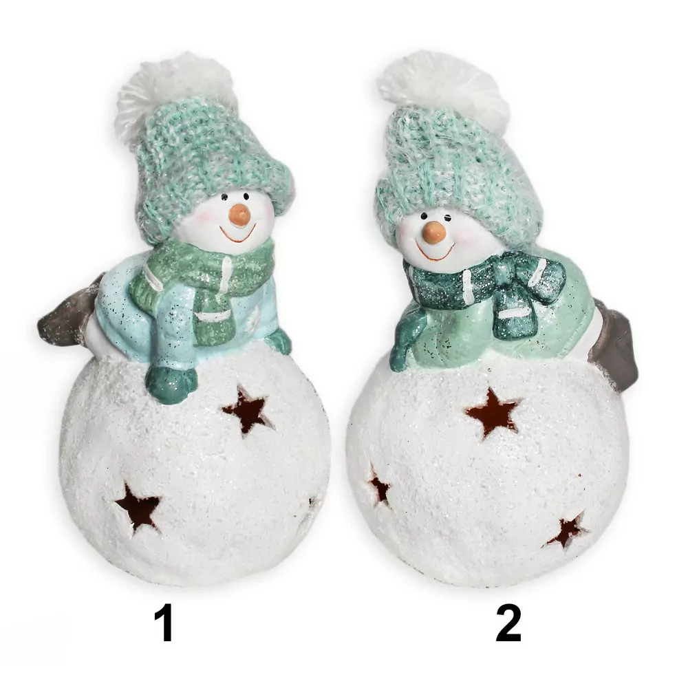 Sněhulák LED keramika 18cm mint mix