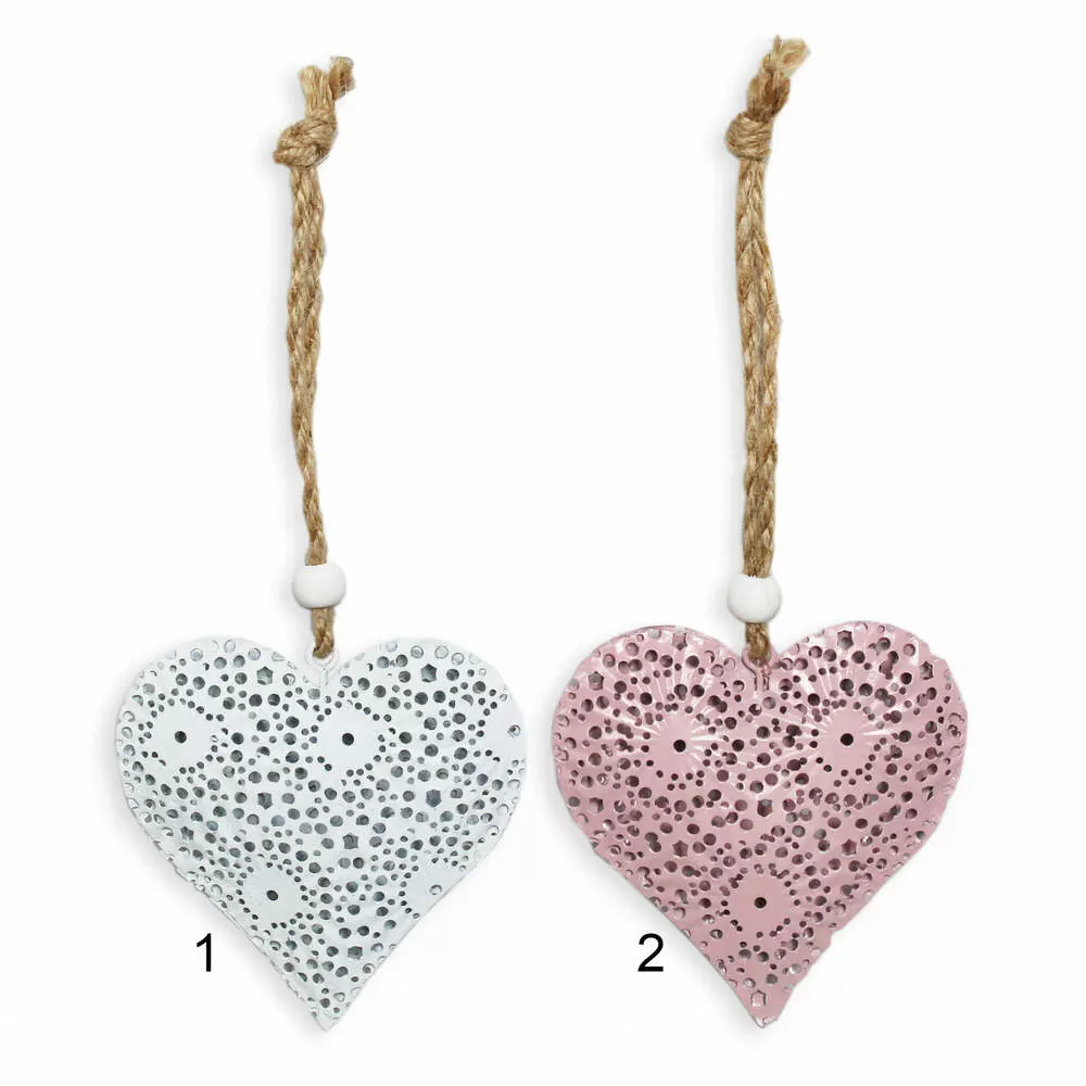 Srdce závěs kov 8cm bílá
