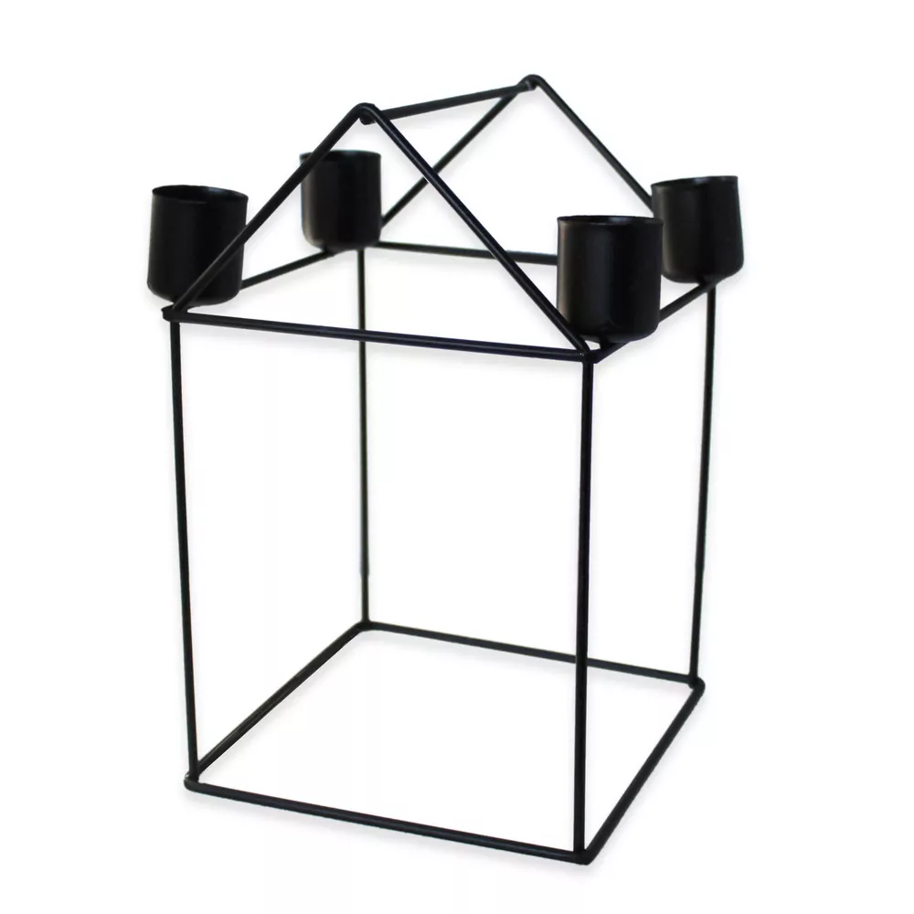Svícen domek kov 15,5cm černá