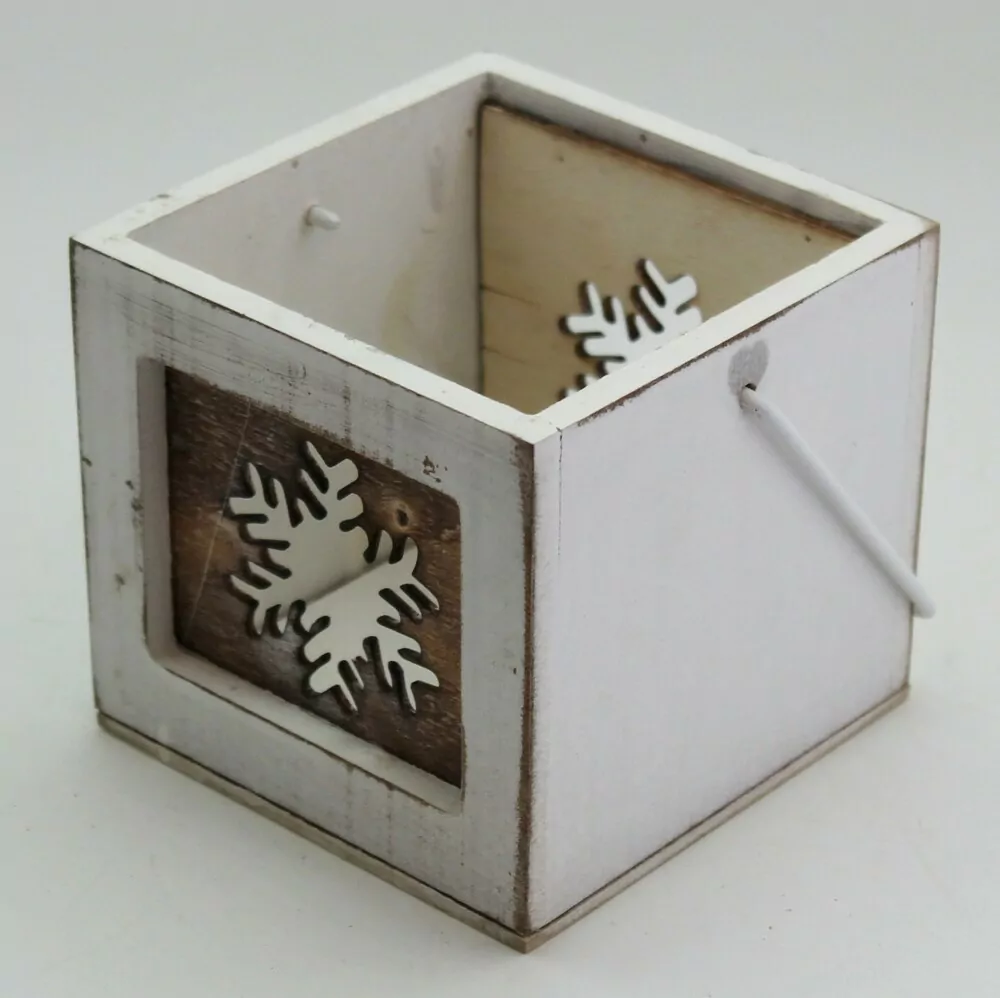 - Svícen patina dřevo/sklo/kov 8,5cm bílá
