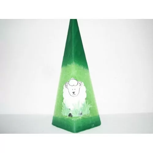 Velikonoční svíčka pyramida ozdobená velikonoční ovečkou.