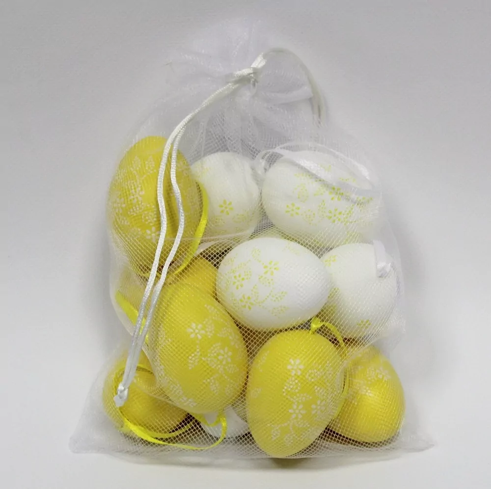 Vajíčka závěs pvc 12ks/6cm bílá/žlutá