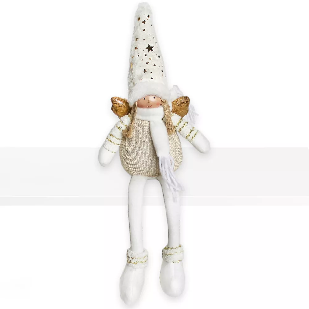 Vánoční figurka nohatá textil 42cm zlatá