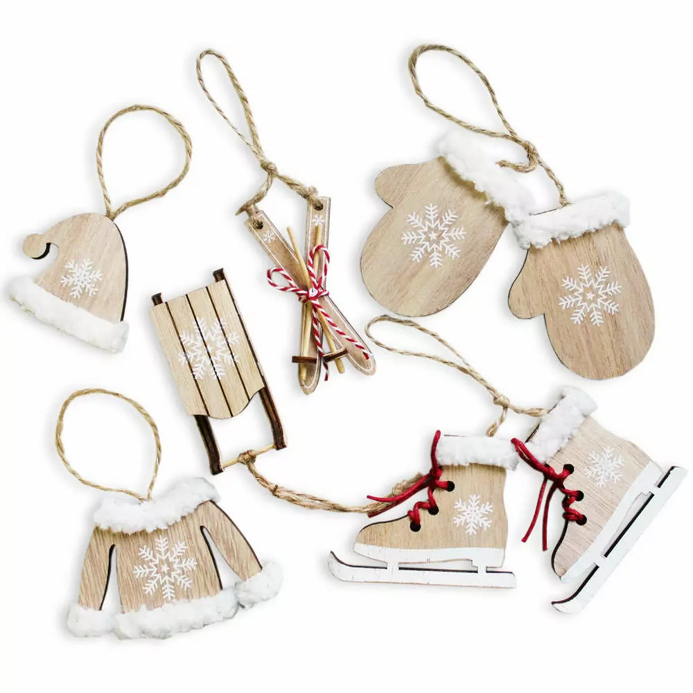 - Vánoční záv.ozdoby dřevo 6ks/7cm natural