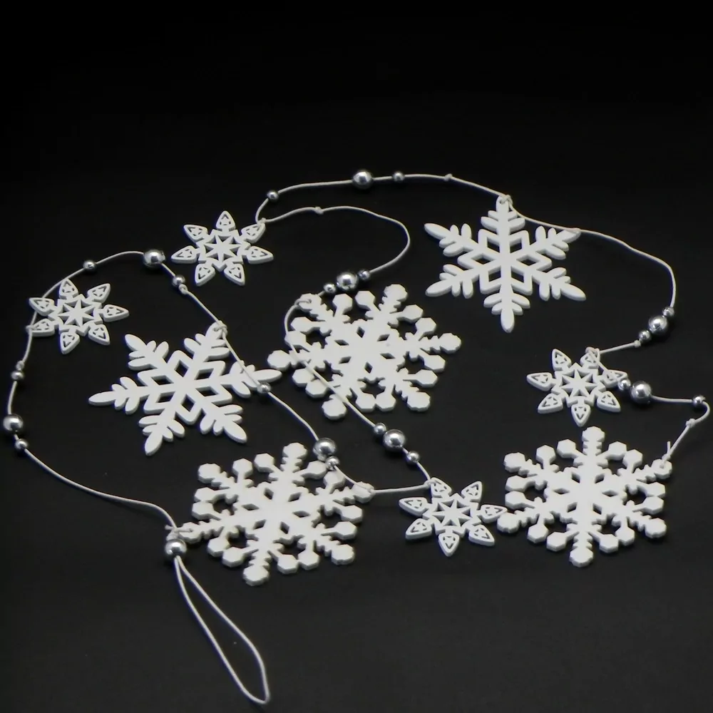 - Vločky girlanda dřevo bílá
