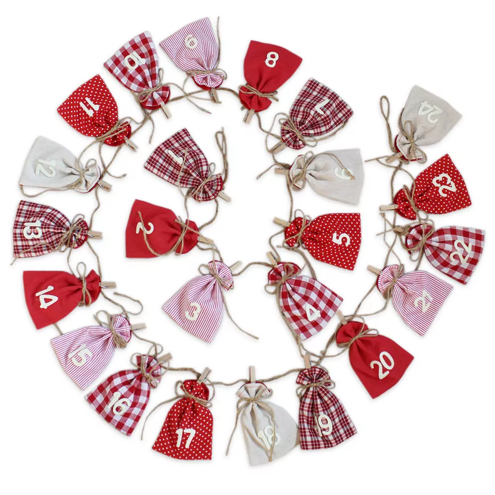 - Adventní kalendář girlanda textil 2m/9,5x13cm červená