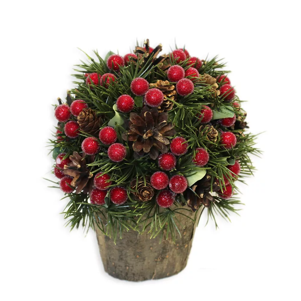 - Aranžmá květináč bobule pvc/šišky 22cm červená