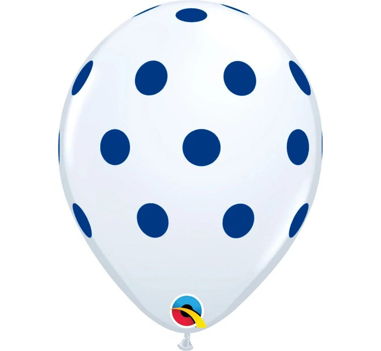 - Balónky s modrými puntíky, pastelově bílé, 28 cm, 25 ks