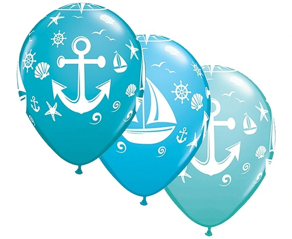 - Balóny Plachetnice a kotva, Karibská pastelově modrá, modrá, mořská, 28 cm, 25 ks