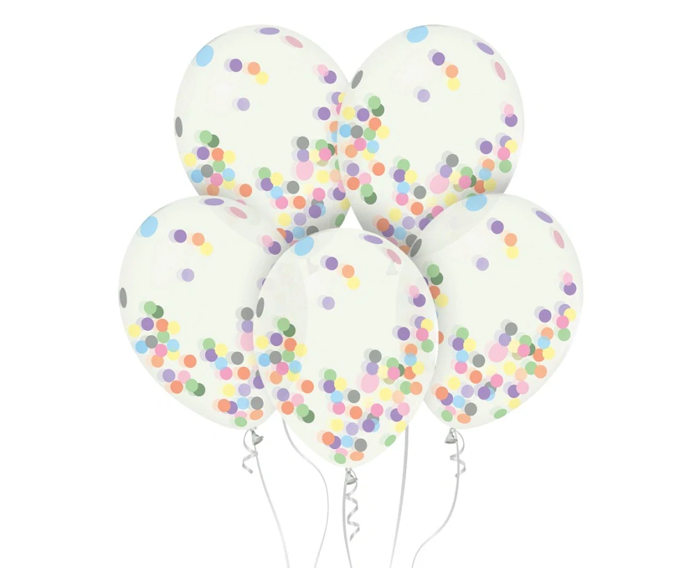- Barevné balónky s konfetami, průhledné, 30 cm, 4 ks.