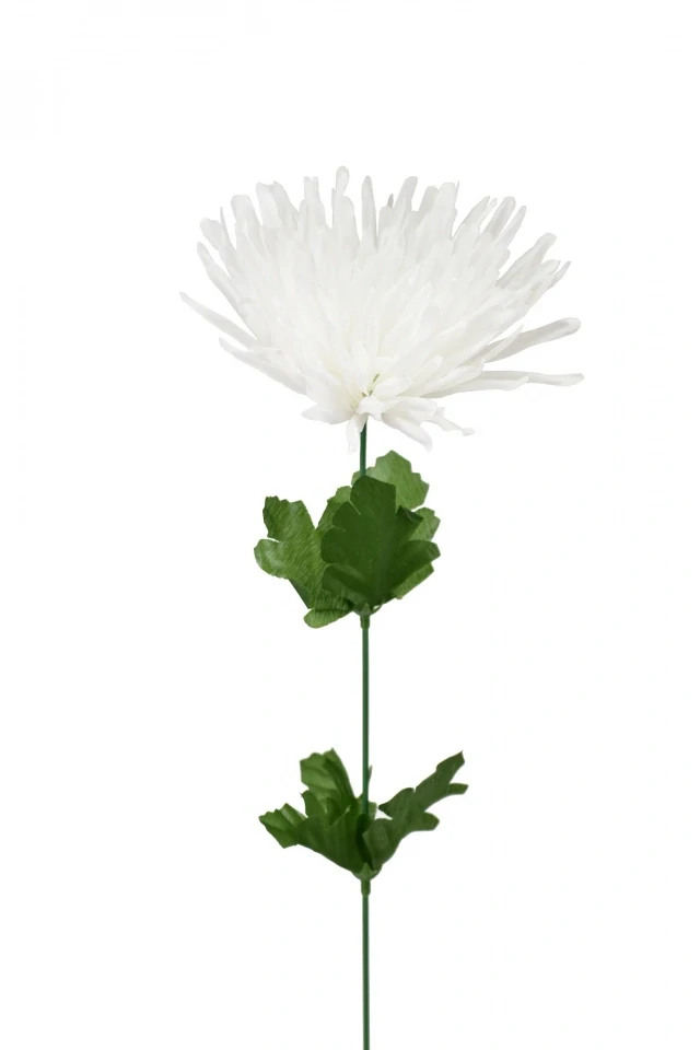 Umělá chryzantéma na stonku s listy.