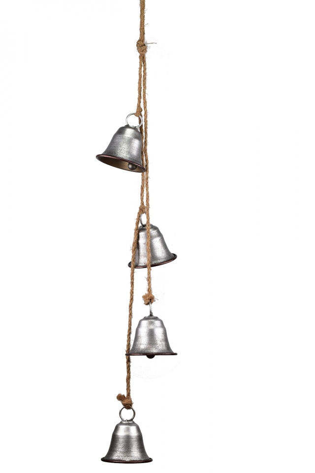 - Čtyři zlaté kovové zvonky na jutovém provaze 8x7,3x75 cm