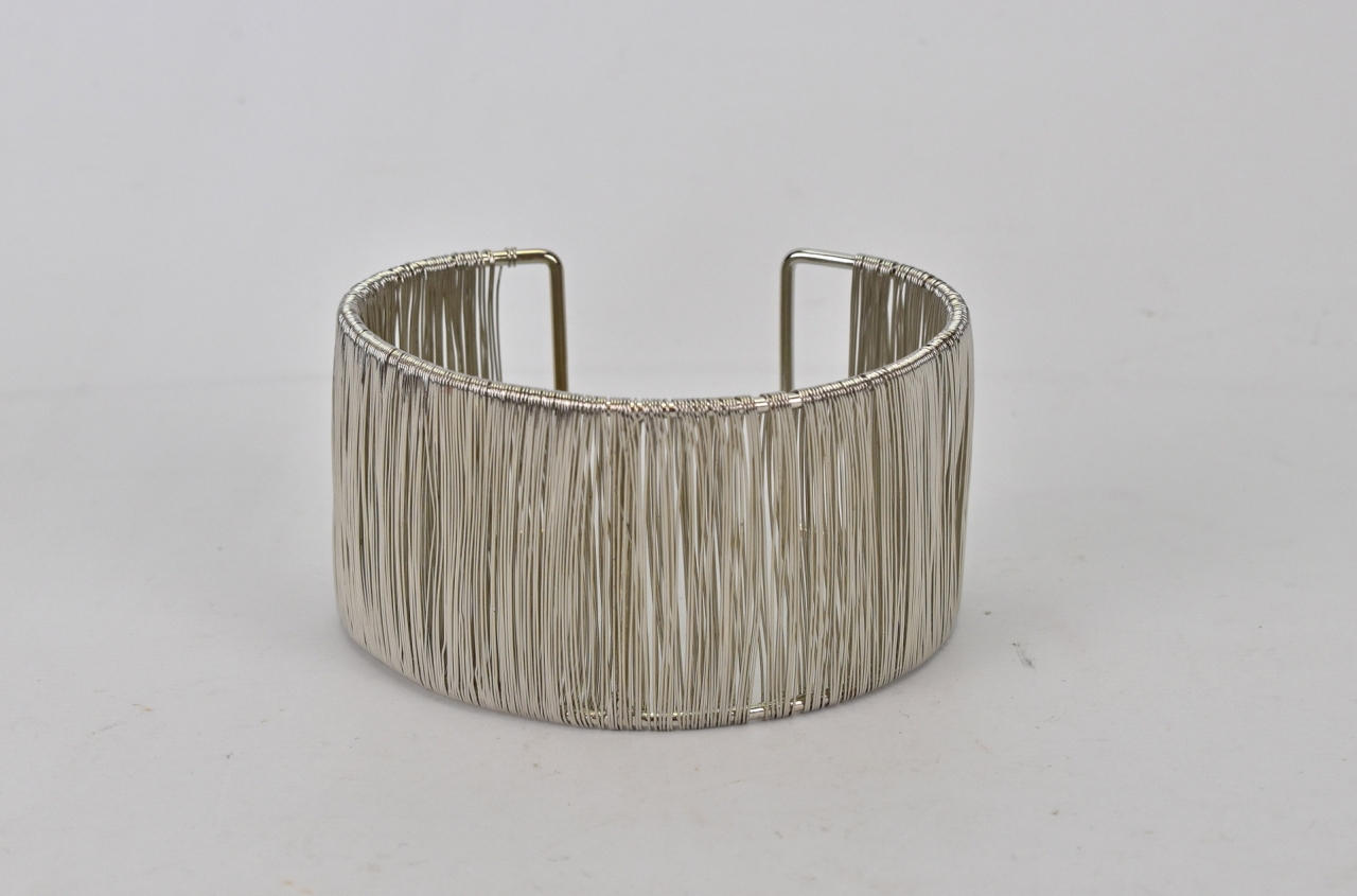 Moderní dámský náramek na ruku ve stříbrné barvě.