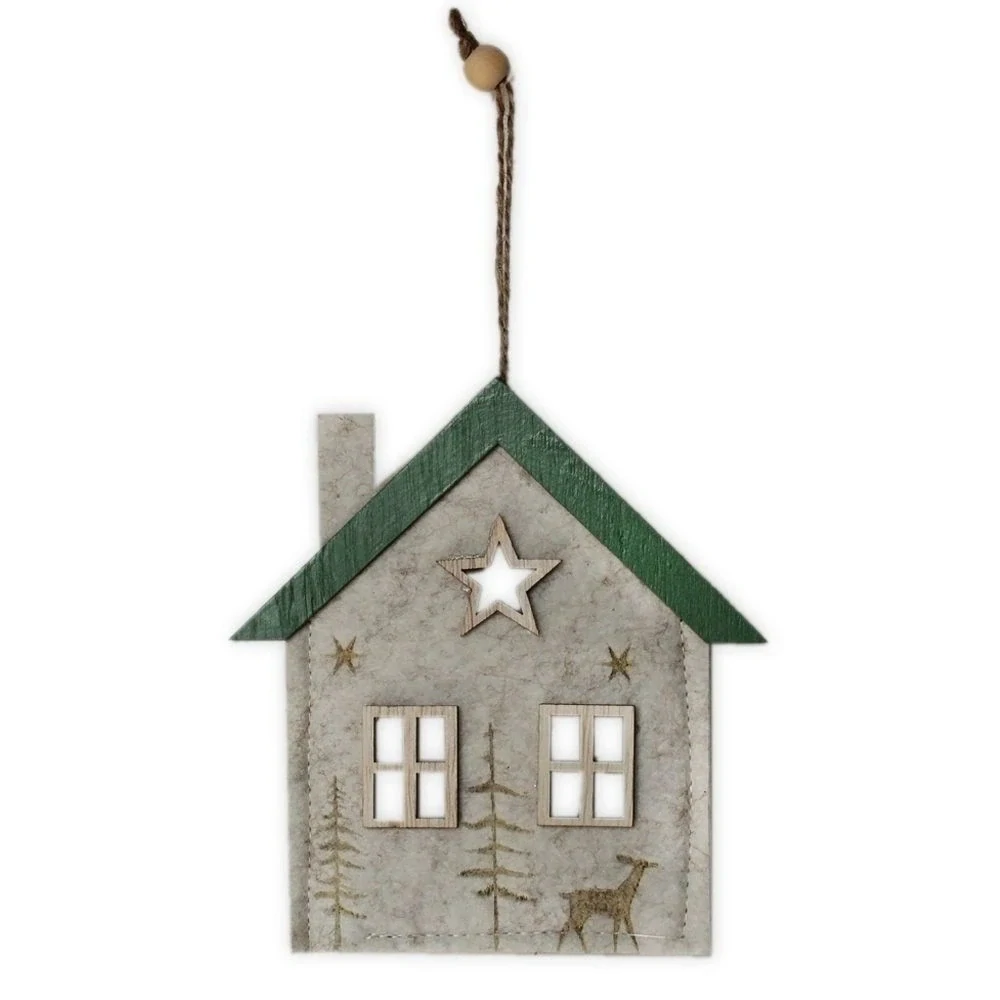 - Domek závěs filc 15cm krém/zelená