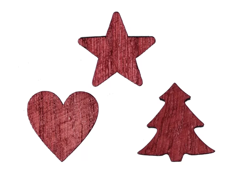 134654 057 250772 dekorace červená mix Sada 48 ks dřevěných dekorací - srdíček, hvězdiček a stromečků. Materiál: dřevo Rozměry: 2,5 cm celý popis