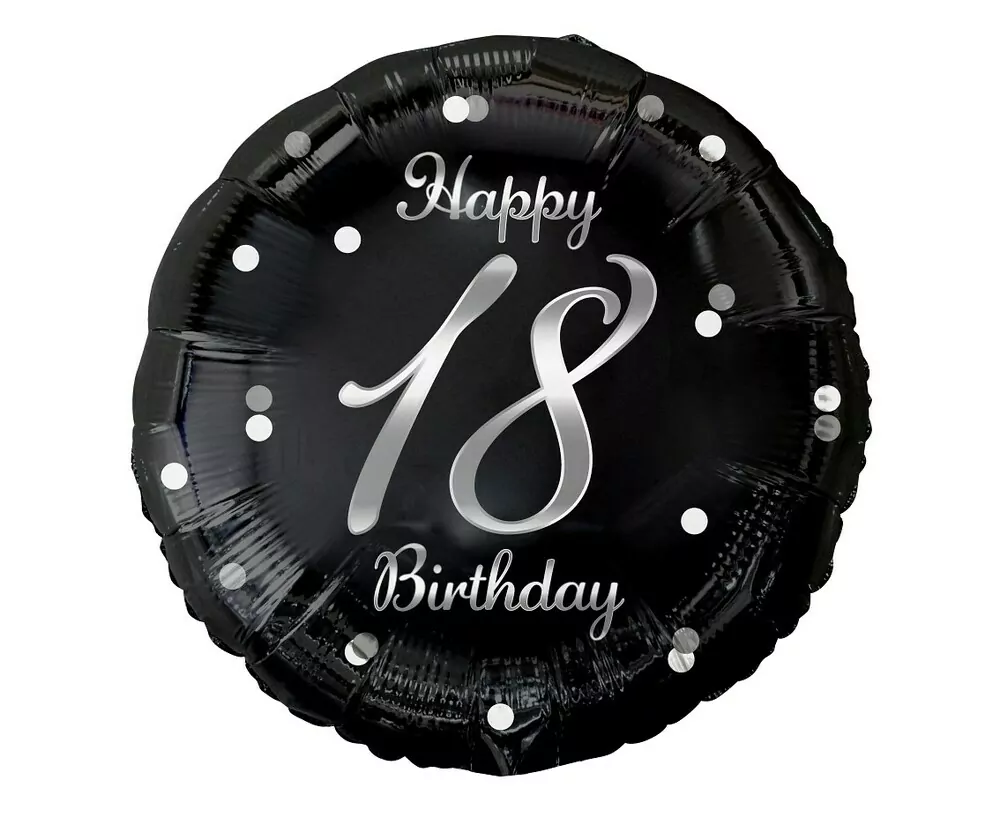 Černý fóliový balónek se stříbrným potiskem Happy 18 Birthday bude skvělou volbou!