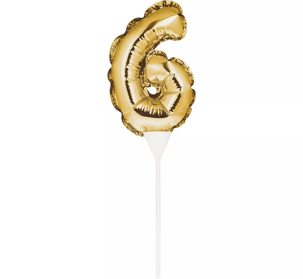 Fóliový balónek DIGITAL 6, zlatý (samonafukovací na tyči)