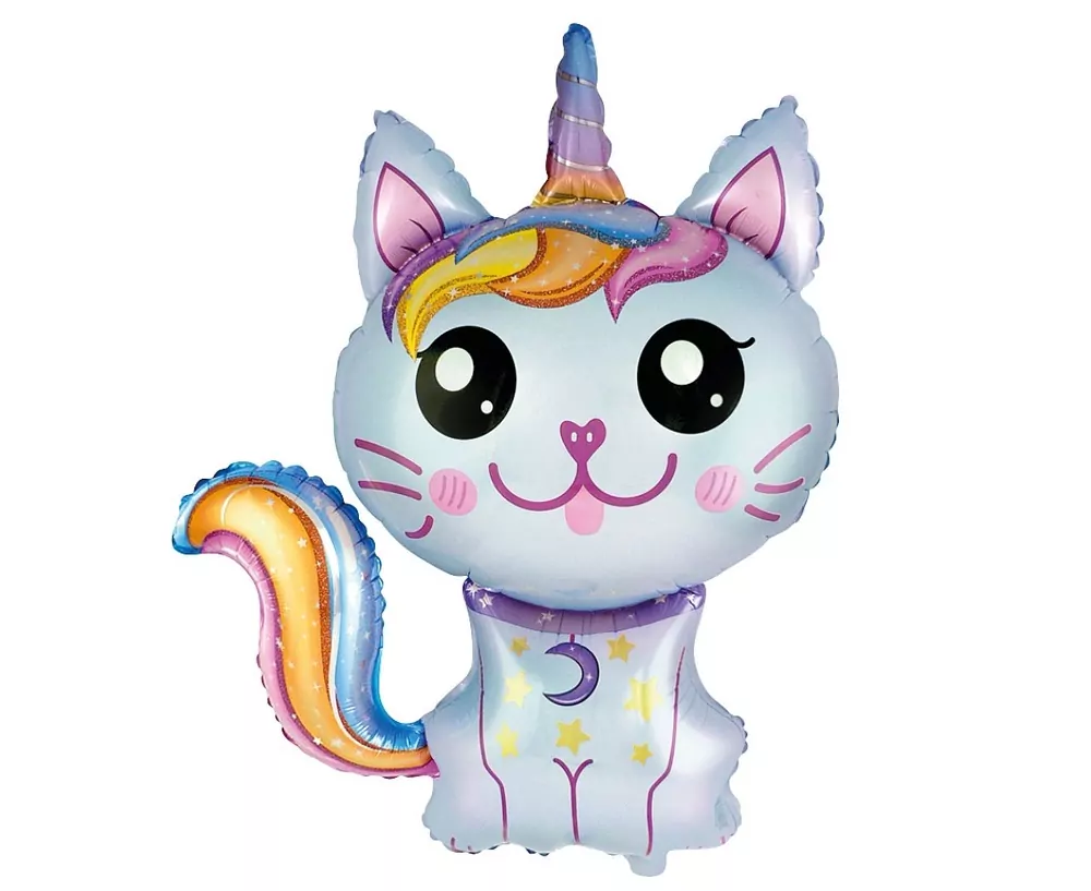 - Fóliový balónek Kouzelná kočička, modrý, 88x73cm