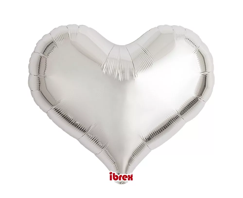 Fóliový balónek srdce, stříbrná metalíza, 18"