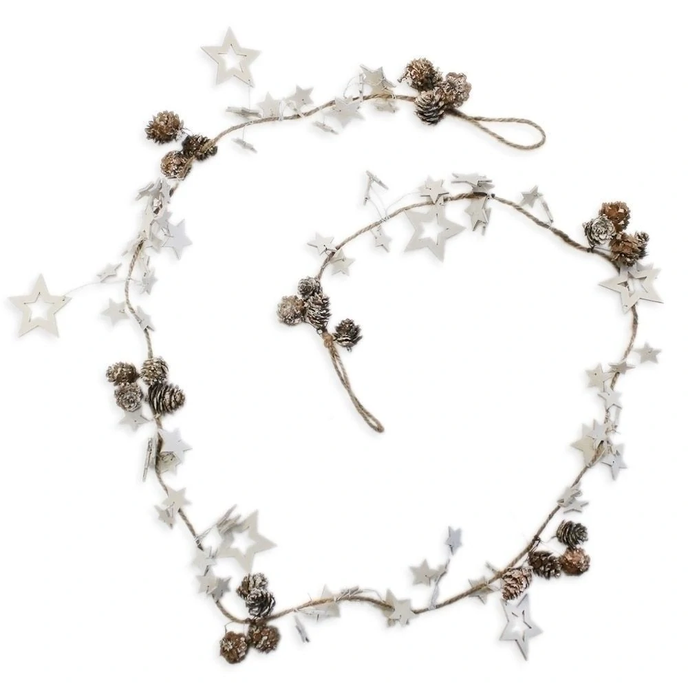 Girlanda dřevo šišky/hvězdy 150cm bílá