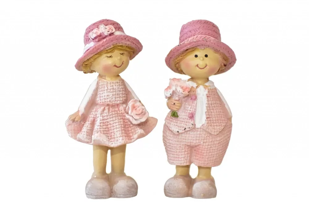133401 015 CAP-8-01881-21 figurka Dekorační figurky holčička a chlapeček s květinou. Materiál: polyresin Rozměry: výška 9 cm šířka 3,5 cm hloubka 3 cm celý popis