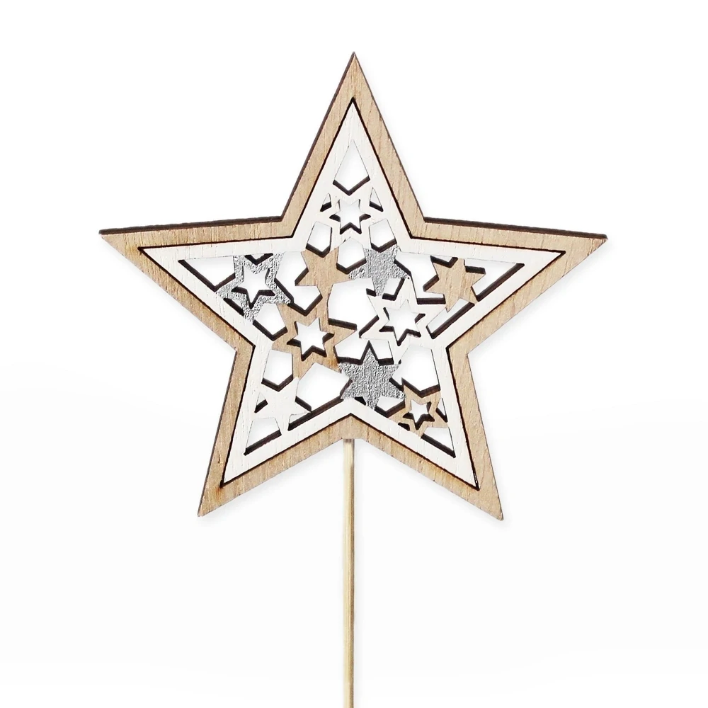- Hvězda zápich dřevo 23cm bílá