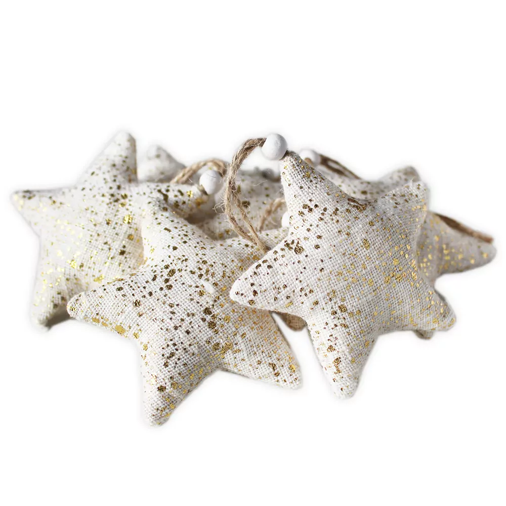 - Hvězdy závěs textil 6ks/7,5cm béžová/zlatá
