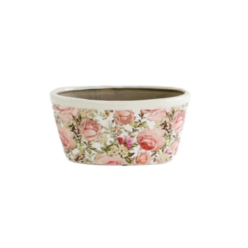 Keramický oválný květináč Roses 27x13x14 cm