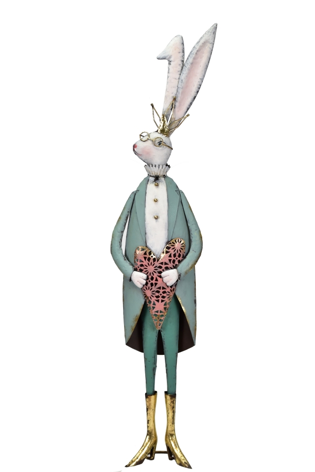 Dekorativní kovový zajíc se srdíčkem. Vyzdobte si interiér nevšední, moderní dekorací.