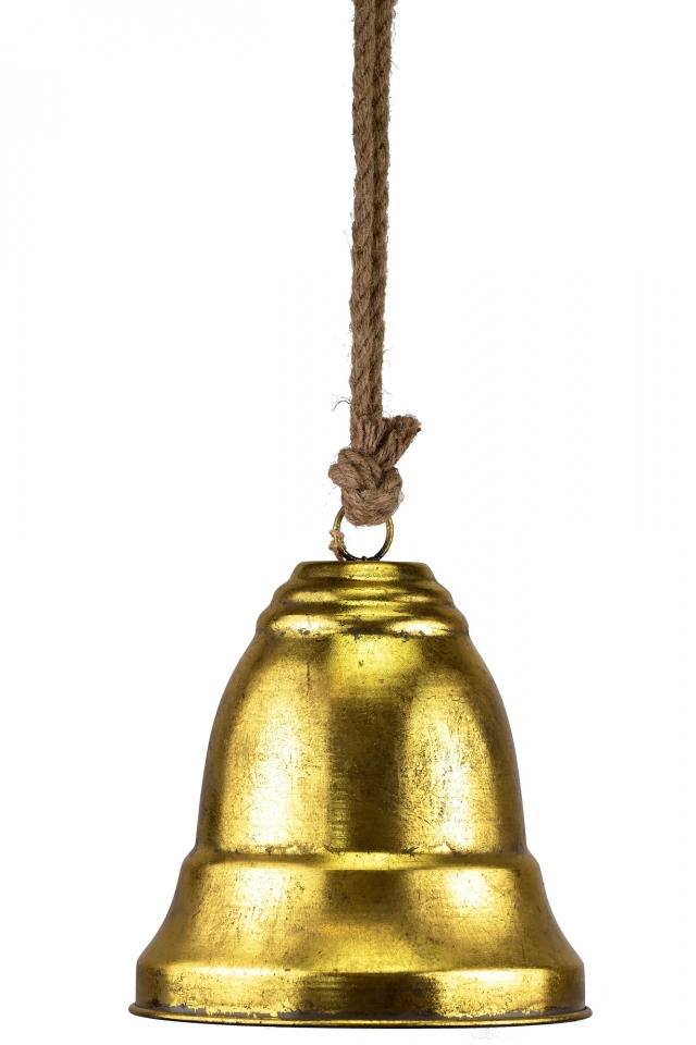 Kovový zvonek zlatý s patinou na jutovém provaze 23x23,5 cmSkladem517,00 Kč/ ks427,27 Kč bez DPH