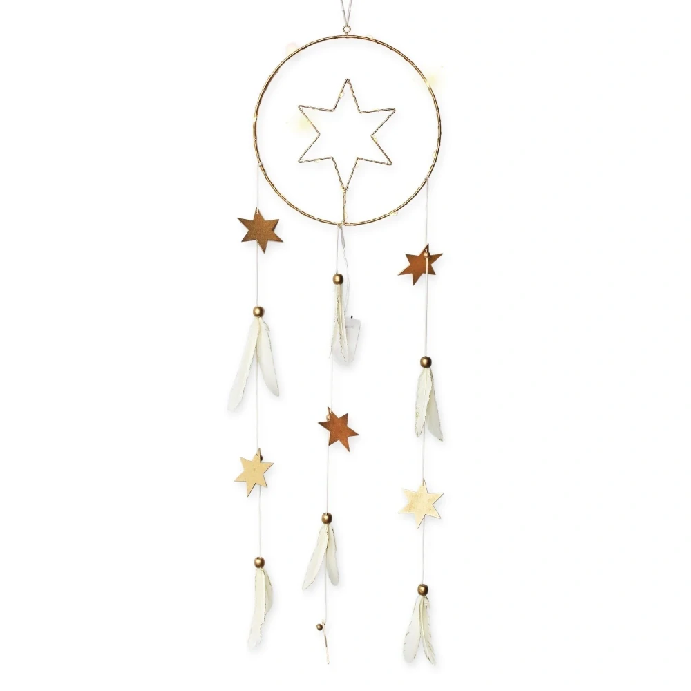 Lapač snů hvězda kov/LED 80CM krém II.jakost